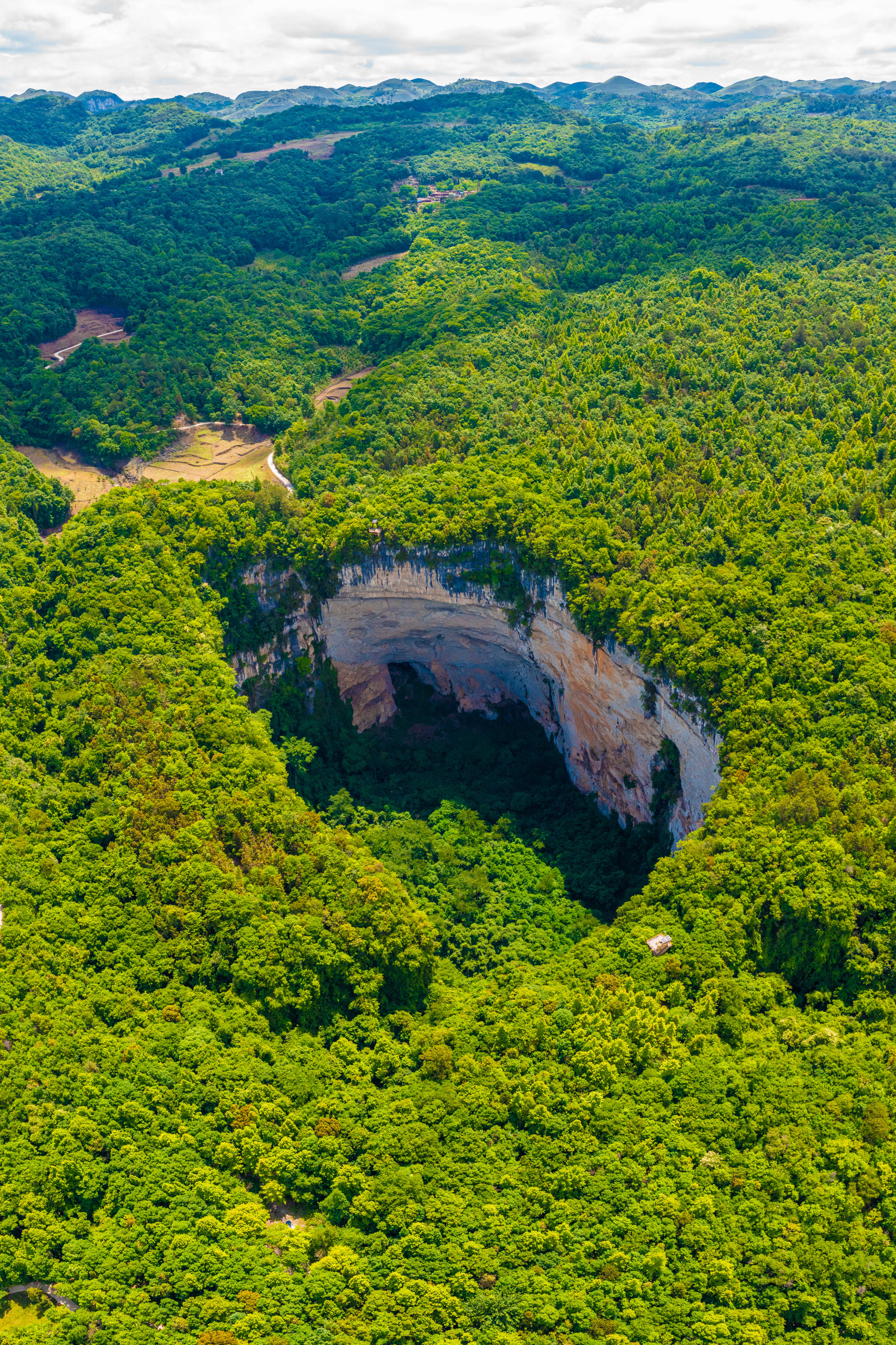 是乐业天坑群的代表性景观,距乐业县城23千米。东西长600米,南北宽420米,垂直深度613米,有“天然绝壁地宫”之美称。地下原始森林面积9.6万平方米,面积位居世界第一。有两条宽 7~13 米的地下暗河,是广西目前河流量最大、流程最长的地下暗河之一。大石围天坑周边还有20多个天坑,它们拥有独特的喀斯特地貌,包含了世界上众多天坑之精华,堪称“世界天坑博物馆”。