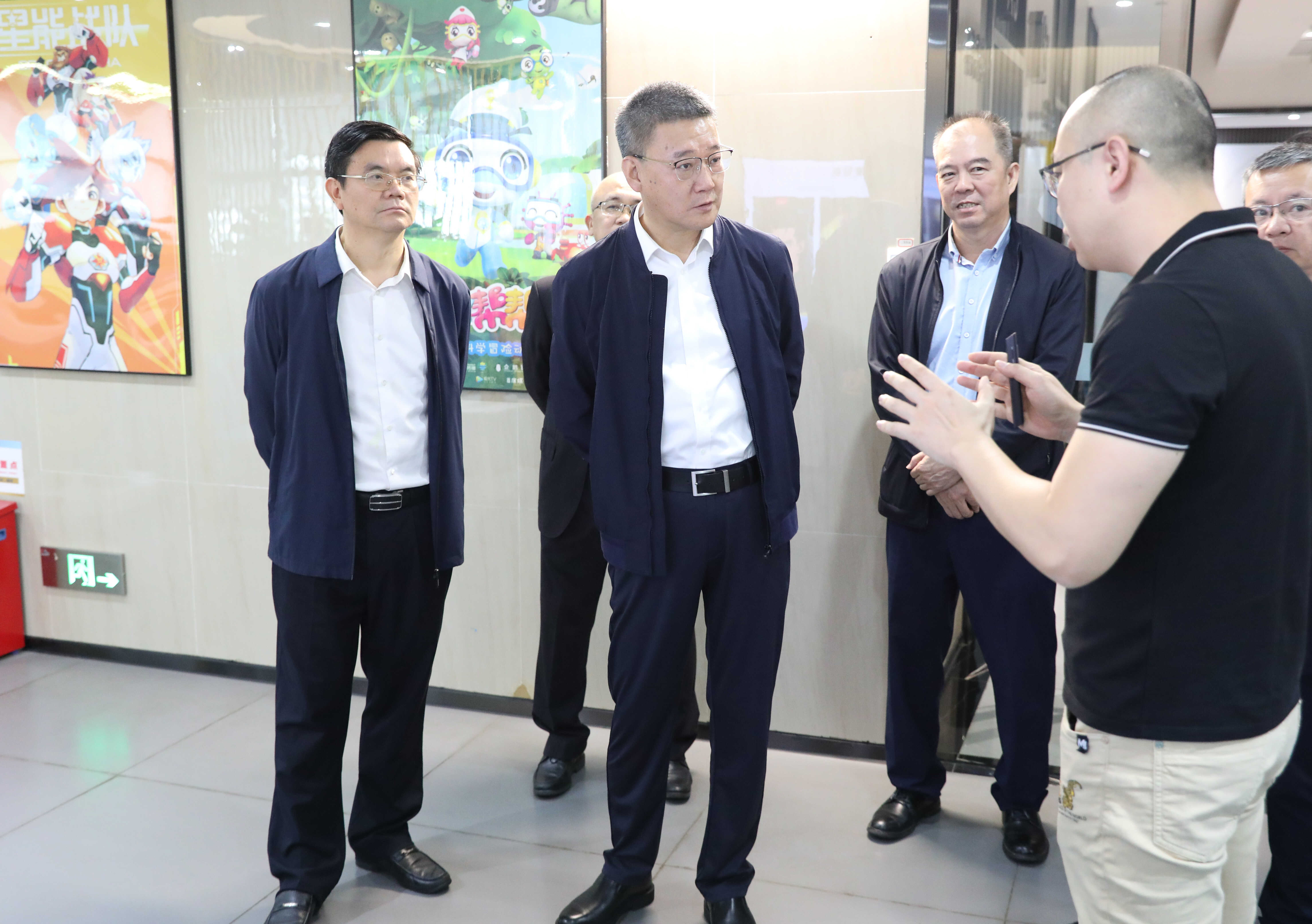 调研组一行在中国—东盟网络视听产业基地入驻企业调研“人工智能+广电视听”创新应用情况。