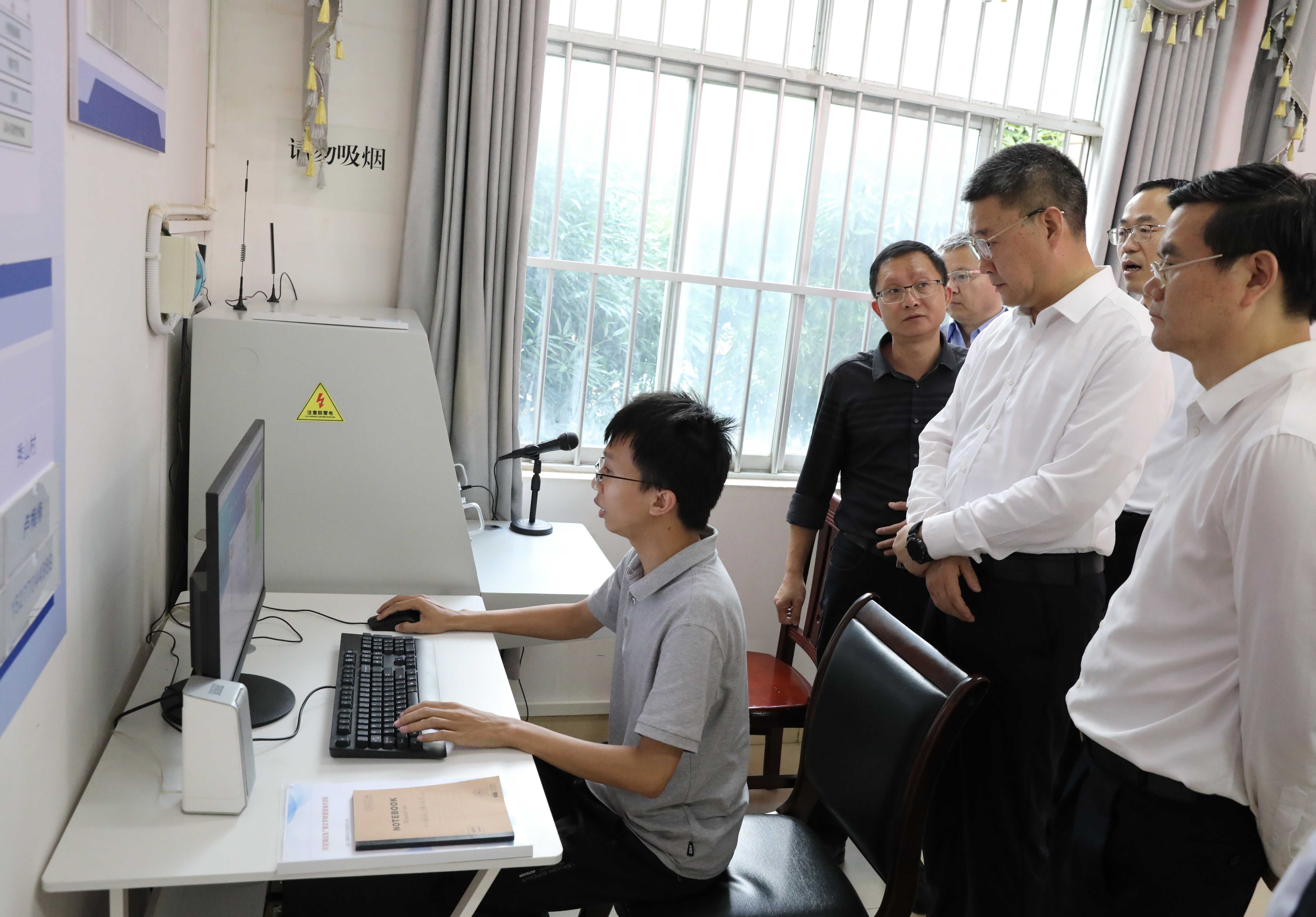 调研组一行在双定镇政府调研应急广播基层应用情况。